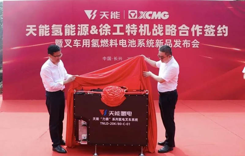 2021年9月28日,天能氫能源與徐工集團(tuán)旗下公司徐州徐工特種工程機(jī)械有限公司(下稱“徐工特機(jī)”)簽訂戰(zhàn)略合作協(xié)議。簽約儀式現(xiàn)場,天能氫能源正式發(fā)布了徐工叉車用氫燃料電池系統(tǒng)新品。