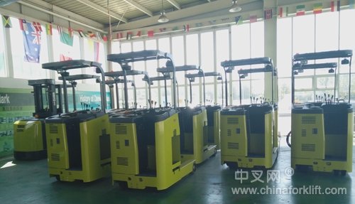在結(jié)束對鄭副總的采訪后,應(yīng)青島克拉克崔光浩部長的邀請,參觀了青島克拉克工廠生產(chǎn)線、成品庫及展廳??死瞬孳囋O(shè)備系列廣泛,包括液化石油氣及柴油驅(qū)動(dòng)的叉車,以及全新系列的電動(dòng)叉車、倉儲(chǔ)設(shè)備,符合多種不同行業(yè)的設(shè)備需求。