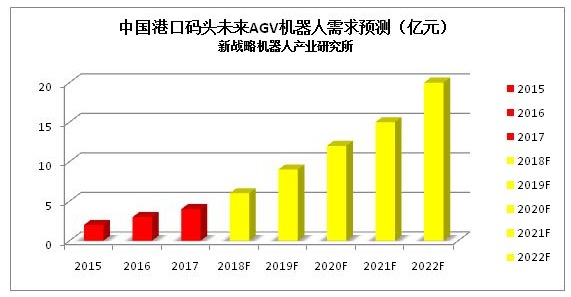 據(jù)測(cè)算,單個(gè)碼頭AGV小車的需求量約70臺(tái),中國(guó)主要的單個(gè)大型港口的總需求量保守估計(jì)在1500臺(tái),市場(chǎng)產(chǎn)值在5-10億元人民幣。截止2016年中國(guó)吞吐量過(guò)億的大型港口就有十五個(gè),如果按照每個(gè)大型港口平均500臺(tái)(保守)AGV的需求量來(lái)算,就是7500臺(tái)AGV產(chǎn)品,市場(chǎng)產(chǎn)值將是20-60億人民幣。這僅僅是吞吐過(guò)億的十五大港口,中國(guó)貨運(yùn)碼頭港口總共超過(guò)500個(gè)。該市場(chǎng)需求將在較短時(shí)間內(nèi)呈直線上升趨勢(shì),5年后逐步趨向穩(wěn)定??梢灶A(yù)測(cè),未來(lái)的幾年,正因?yàn)榫薮蟮慕?jīng)濟(jì)和社會(huì)效益,港口應(yīng)用將是AGV在中國(guó)富有前景的行業(yè)。