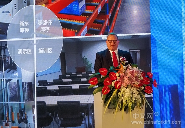 Crown-科朗叉車全球高級(jí)副總裁JIM MOZER致辭道:這個(gè)新廠房也從側(cè)面印證了我們對(duì)客戶和員工的承諾。這個(gè)新廠房符合我們"one crown"的全球標(biāo)準(zhǔn),能夠?yàn)槲覀內(nèi)虻暮献骰锇樘峁┙y(tǒng)一的高水準(zhǔn)服務(wù)。同時(shí)也讓我們能充分的服務(wù)我們的中國(guó)本土市場(chǎng)。這項(xiàng)投資也有著其他深遠(yuǎn)的影響。我們可以將顛覆性的新型解決方案,例如Auto Positioning自動(dòng)定位,Quick Pick Remote自動(dòng)揀選遠(yuǎn)程控制系統(tǒng),以及整套的Insite車隊(duì)技術(shù)更好的應(yīng)用于中國(guó)市場(chǎng)。請(qǐng)您今天下午務(wù)必花點(diǎn)時(shí)間,來(lái)了解一下這些技術(shù)如何幫助您解決棘手的業(yè)務(wù)挑戰(zhàn)。您一定會(huì)覺(jué)得不虛此行。Crown-科朗經(jīng)過(guò)多年的發(fā)展和歷練,已經(jīng)成為物料搬運(yùn)行業(yè)的領(lǐng)導(dǎo)者。尋根溯源,我們由1945年在美國(guó)俄亥俄州新不來(lái)梅成立的一家小微公司,成長(zhǎng)到現(xiàn)在年收入29億美元的全球物料搬運(yùn)行業(yè)的領(lǐng)導(dǎo)者。在全球84個(gè)國(guó)家,擁有超過(guò)500家分公司,14000多名員工。這些數(shù)字對(duì)我們來(lái)說(shuō)的確很重要,但是更重要的是,我們深知這些在設(shè)計(jì)、制造、銷售和技術(shù)方面的投入中是為了一個(gè)目標(biāo),那就是“服務(wù)客戶”!我們今天說(shuō)了關(guān)于投資,關(guān)于新廠房、培訓(xùn)中心、演示中心的種種。這些的確很重要,但是我要提醒大家的是,故去的Crown-科朗前董事長(zhǎng)James F.Dicke Sr.曾說(shuō)過(guò)“若沒(méi)有好的員工,磚頭、混凝土和技術(shù)便一文不值。”所以今天能和這么多好員工在這里聚首,我也與有榮焉。謝謝!